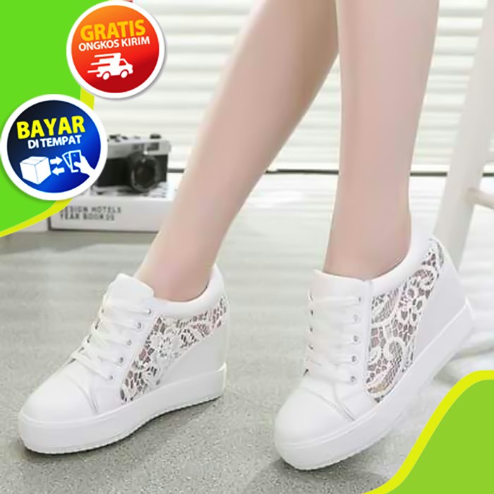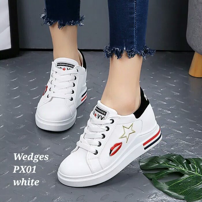 Sneakers Wedges Stela Kekinian 7cm Tinggi Bahan Semikult Sepatu Wanita Cantik Shopee Indonesia