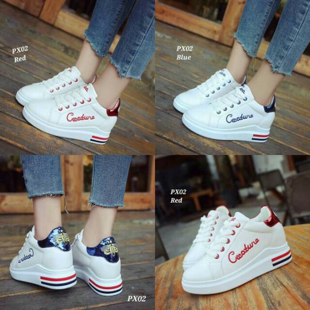 Korea Sepatu Sneakers Wanita Fashion Hak Sepatu Kekinian Warna Hitam Merah Putih Kasual Ket Shopee Indonesia