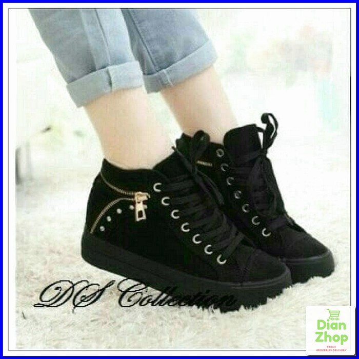 Sepatu Wanita Kekinian Sepatu Wedges Wanita Sepatu Wedges Ad44 Hitam Bahan Double Suede Hitam Shopee Indonesia