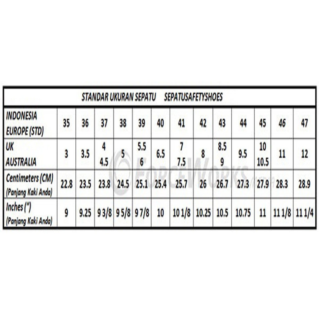 Cara Menghitung Ukuran Sepatu Sesuai Size Chart Dari Seluruh Dunia Jualsepatusafety Com